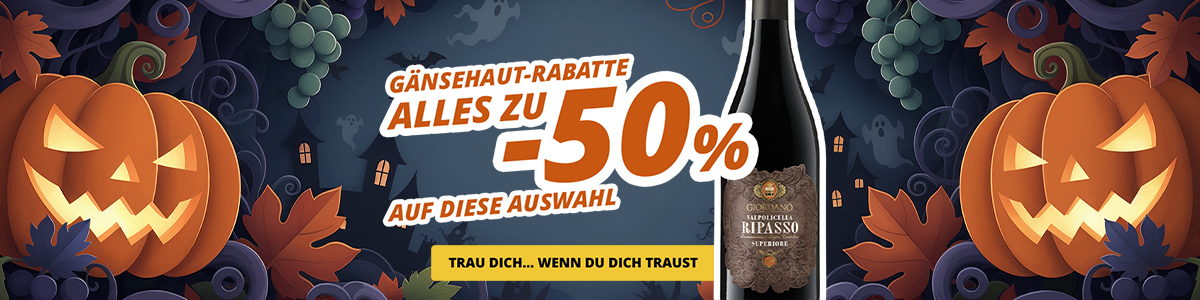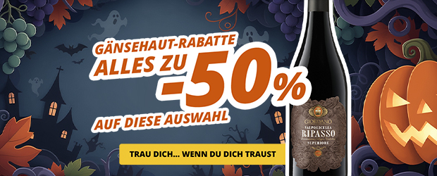 Manche feiern mit Süßigkeiten, andere lieber mit einem guten Glas Wein. Doch diesmal sind es nicht die Geister, die dich zittern lassen… sondern die Rabatte! Eine unheimlich gute Auswahl mit -50 % Rabatt: Schlag jetzt zu und füll deinen Weinkeller, bevor sie in der Nacht verschwinden! 🕛🍷