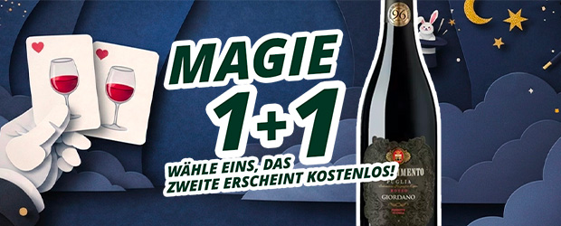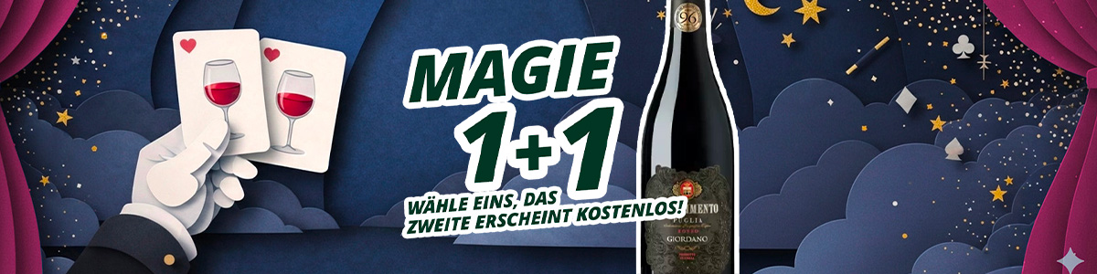 Mit der 1+1-Promotion wählst du ein Produkt aus der Auswahl und das zweite erscheint… wie durch Zauberhand! Egal, ob für einen spontanen Aperitif, ein besonderes Abendessen oder einen Abend voller Funken, hier findest du Weine und Spezialitäten, die sich durch Magie verdoppeln. Eins wählst du, das andere… schenken wir dir.